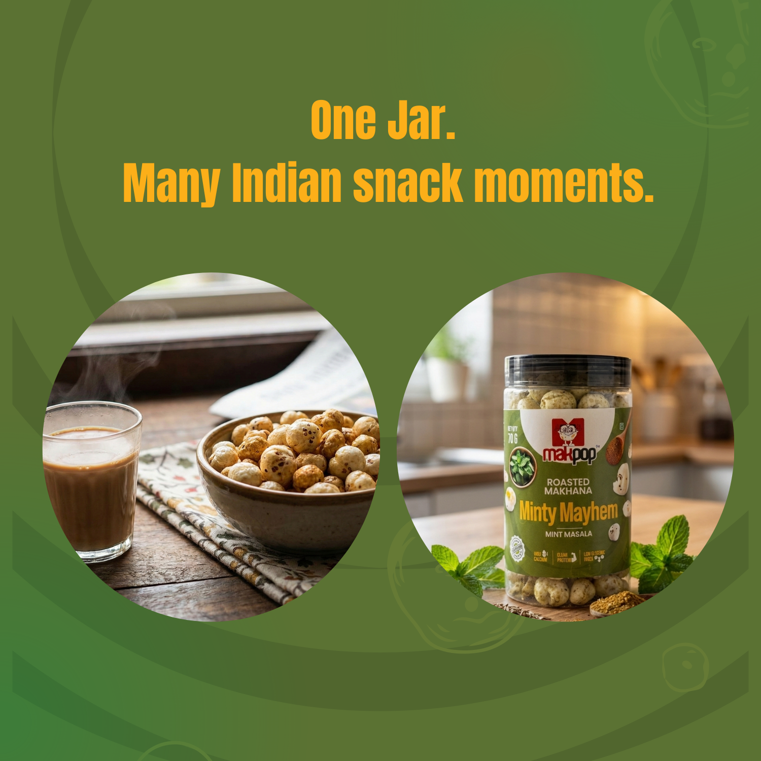 Meet Minty Mayhem, zings cool mint with masala magic, turning everyday snacking into a fresh-meets-fiery flavor riot.